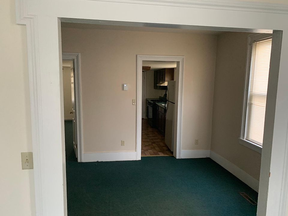 Clean, quiet, large one bedroom apartment with full kitchen, dining, and living room. Washer/dryer hook up in unit. Private off street parking with private entry way. Tenant responsible for gas and electric. No smoking in building. No pets.
