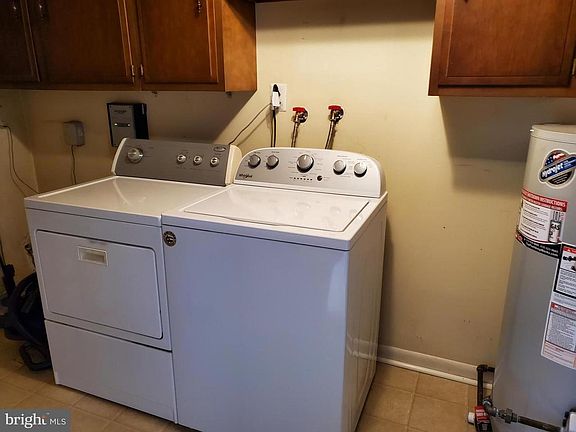 1 master bedroom and 1 mid-size bedroom on 2nd floor with a shared full bathroom. 1st floor features a living room with 15ft high ceiling, dining room with a very large sliding door that opens in the backyard. 1st floor also has laundry room with washer and dryer included. Refrigerator is also included.