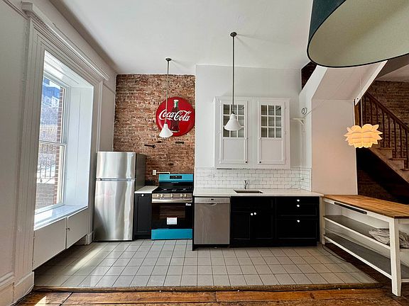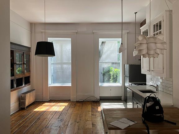 Historic 3.5 Bedroom 1.5 Bath Duplex in Boerum Hill with a Shared Backyard! Just one flight up to the second and third floors, step into classic Brooklyn charm with this loft-like 1,800 SQFT duplex in Boerum Hill. Originally built in 1836, in Greek Revival style by Ezekiel Frost, this unique home offers a rare blend of historic character and modern comfort, including brand-new appliances. This expansive two-level layout features soaring ceilings11 feet on the main floor and 10 feet on the upper levelaccentuated by original tin ceilings and beautiful 8-inch-wide pine floors throughout. The living area boasts a FULLY FUNTIONING wood-burning cast iron stove, installed in the 1980s. Upstairs, the primary bedroom includes its own FULLY FUNTIONING marble-mantel wood-burning fireplace. Enjoy abundant natural light all day long with South-east and North-west exposures. The home also includes access to a massive shared backyardperfect for relaxing or entertaining. Ideal for those seeking space, light, and character in one of Brooklyn's most desirable neighborhoods. Conveniently located moments from local cafes, shops, and multiple subway lines for an easy commute. Available for immediate move-in. Up to two cats allowed upon approval. Please note: there is no washer dryer in the unit and the installation of one will not be allowed. There is a new laundromat that is anticipated to open up right around the corner.