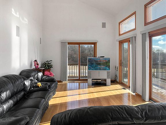 FABULOUS CONTEMPORARY BEAUTY! If you love light and gorgeous views from every room, this is your home! On awesome flat, 2.44 acre lot with plenty of room to add extra garage or building if desired. This home has lofty ceilings and a feeling of spaciousness. There is an entrance to the outside from every room to beautiful upgraded decking. This home is spread out on 4 levels for privacy and entertaining. A solar panel system makes this all electric home energy efficient and up to date.