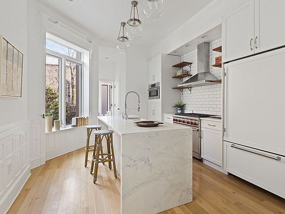 Own a piece of history with this rare, breathtaking, Landmarked 1887 Romanesque Revival Park Slope townhouse with four-stories + finished basement. Designed and reimagined by the Brooklyn Home Company, this monumental, gut-renovated 6 bedroom, 4 bath townhouse is not to be missed. Currently set up as a two-family that could easily convert into a majestic single family, this is a once in a lifetime opportunity to own a home that beautifully combines Romanesque Revival era architecture with contemporary design. In the exquisite owner's triplex, feel transported back in time by the original millwork, plaster mouldings, high ceilings and lovely period details. The bright parlor level living room features a spectacular original pier mirror and leads into the charming formal dining room with its decorative marble and brass fireplace. The lavish eat-in kitchen -- open to the dining room -- features Calacatta gold marble, 36? six burner Wolf range, Subzero paneled refrigerator, restoration hardware lighting and an enormous walk-in pantry. Step outside from this floor and enjoy easy outdoor entertainment from the blue stone paved garden with the built in gas grill, refrigerator, sink and elevated planting beds. On the second floor, discover two lovely bedrooms, full marble bathroom, the laundry area, plus a third extra-large bedroom that can be used as a spacious gathering place, work space or media room -- the possibilities are endless. Perched on the top floor is a grand suite that occupies the entire level! Relax in your own private oasis featuring high beamed ceilings, arched windows, a gas fireplace, huge walk-in-closet and and a separate media/den/office room with its own second fireplace. The spa-like en-suite bathroom is nothing short of luxurious with an enormous Grohe double shower with two rainheads and multiple sprayers, soaking tub and radiant heated Honed Carrerra marble floors. Finally, on the garden level, a fully renovated two bedroom apartment is ready to serve as income producing rental or reconfigured for single family use. The bonus? A fully finished basement that is ideal for long term storage. Located on famed 7th avenue in Park Slope, this treasure is within minutes of Grand Army Plaza, Prospect Park, 5-star restaurants and all the boutique shopping Park Slope and Prospect Heights has to offer. The B/Q 7th avenue station and 2/3/4 trains are conveniently found one block away. Don't miss out on this fantastic opportunity to have it all - call today!