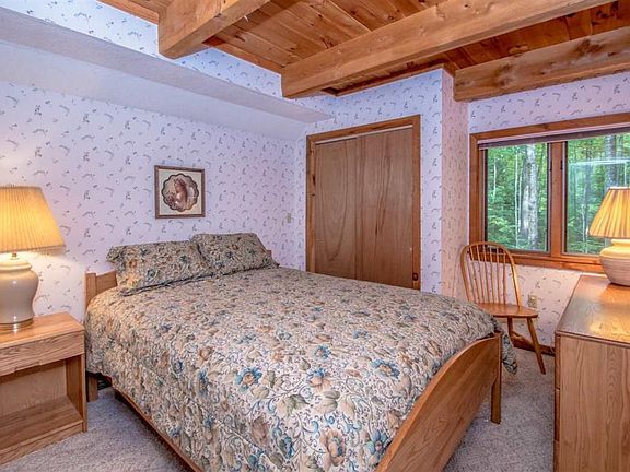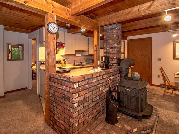 Comfortable, Convenient! A welcoming townhouse with lots of natural wood trim & exposed beams to create that rustic vacation feel youâve been looking for. Enhanced by large windows and a big deck, accessible via sliders through the dining/livingroom area which faces the woods. Highlighting this open design is a beautiful brick chimney & hearth that surrounds the kitchen counter for aesthetics and functionality w/ a Viligant woodstove ready to work-horse its way through winter. Kitchen is a spacious galley with everything you need to eat-in or entertain whenever you want. There is a 1st floor bedroom and ¾ bath plus 2 additional bedrooms, full bath and a reading loft upstairs. Then head downstairs âto the barâ for some fun with a large family rec room finished for loads of extra living space, a red enamel woodstove plus a wet bar to keep the party going strong. Easy access off Westside Rd to all the Valley amenities and priced to sell, so youâll be ready to enjoy more, for less.
