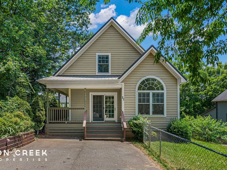 Experience eco-friendly living in this delightful three-bedroom, two-bathroom home featuring a solar system with battery backup. This three-bedroom, two-bathroom home features beautiful hardwood floors throughout, vaulted ceilings with stunning arched windows, and an open-concept living space with vibrant accent walls. The kitchen is outfitted with stainless steel appliances including a side-by-side refrigerator with ice maker, gas range, built-in dishwasher, and over-the-range microwave. Located conveniently in the South French Broad neighborhood, you'll enjoy easy access to downtown amenities while maintaining a peaceful residential setting. The property features a spacious deck perfect for outdoor entertaining, a fenced backyard for privacy and relaxation, hammock posts for the ultimate in outdoor leisure, and driveway parking. This home is designed for modern convenience and energy independence with an included washer and dryer, electric heat and air conditioning, and an advanced solar power system with battery backup. Experience unmatched resiliency and peace of mind with continuous power during extended outages - a unique feature that sets this property apart from typical rentals. Electric included. Tenant pays natural gas, water, sewer, and garbage. Landscaping and lawn maintenance are tenant responsibility. This property is pet-friendly, up to two pets, with a $250 refundable deposit per pet. Sorry, this home does not accept co-signers. All Iron Creek Properties residents are automatically enrolled in the Resident Benefits Package (RBP) via Second Nature for $11.95/month, which provides liability insurance. This fee is waived if tenants provide evidence of private insurance to Second Nature. Additional upgrades to the RBP are also offered for an added monthly cost, including credit building to help boost the resident's credit score with timely rent payments, up to $1M Identity Theft Protection, a best-in-class resident rewards program, and on-demand pest control. Please ask our leasing staff for more details upon application!