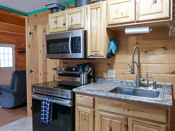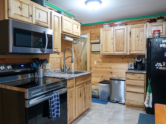 Built in 2016, this 2-bedroom, 1 bathroom home has rustic charm with an open concept kitchen/dining/living room with cathedral ceilings, and pine tongue and groove walls. First floor primary bedroom, bathroom and laundry. Upstairs loft area overlooking the living room, along with a second bedroom. Deck and patio area overlooking the backyard is perfect for entertaining! 1 car detached garage. The property sits on .24 acres tucked away in the country, yet just minutes to town.