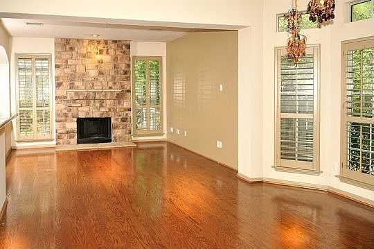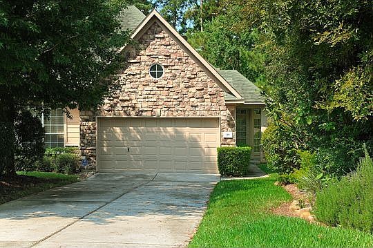 Exceptional Ryland 1 story townhome on a corner lot in Alden Bridge! Neutral paint colors, stunning tile & hardwood floors, soaring ceilings & more! Spacious kitchen w/granite counters, stainless appliances (fridge incl) & plenty of stained cabinets opens to breakfast rm; elegant formal dining; den w/stone gaslog fireplace; private study; master bath w/granite counters & dual sinks. Fenced yard features gorgeous wood deck w/trellis surrounded by pristine landscaping & full sprinkler system.