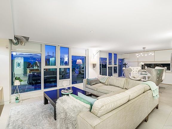Stunning expansive loft in prime Gastown location with magnificent mountain + water views. Commanding almost 1400 sf on one level, this extraordinary sexy suite was transformed by renowned interior designer Patricia Grey with the remarkable attention to detail featuring top of line kitchen, custom finishes, tons of glass slider storage, custom lighting/sound - a true marvel. Open concept kitchen leads to large living room + adjacent dining with large (new) windows showcasing the breath-taking views. Terrific large primary suite w exceptional spa-inspired double sink ensuite w steam shower. Featured in Architectural Digest + Western Living. Great building w common roof deck w BBQ + lounge. 2 side-by-side parking. Pets (2) allowed + rentals permitted. ONE-OF-A-KIND.