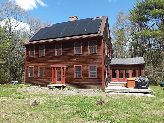 Peace and tranquility are yours with this Salt Box Colonial set on private lot on a dead end road. Wide pine board floors throughout this open floor plan. Dining room has a vaulted ceiling with a skylight. The living/dining room is open to the kitchen which has a 5 x 6 pantry. The living/dining room has access to 15 x 13 three season porch that goes out to a deck with a hot tub. Many possibilities with this floor plan. The bedroom on first floor could be play room, den or office depending on what you need. Master bedroom has vaulted ceiling, his & her closets and full bath with open tile shower. 2 additional bedrooms with full bath. There are 2 bonus rooms on the 3rd floor. There is a chicken coop, wood shed and storage shed. Abundance of hiking, sledding, cross country skiing, skating and swimming at Lake Wyola State Park 1.2 miles from the home. Solar is owned, 4 years old and provides 0 electric bills. Roof is 7 years old. Wood stove on 1st floor and in full walk out basement