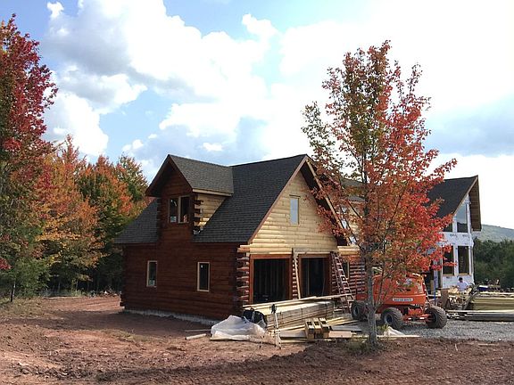 Beautiful 3+ bedroom log home with two story wall of glass facing sweeping views of the Catskill Mountains and Windham's ski trails. The home is slated on 6 prime acres with stream and is within a 10 minute drive of skiing, the Windham Country Club and four season outdoor activities. The owner/builder plans to finish the home with custom finishes including Ashley kitchen cabinets, granite countertops and GE ss app. Wood floors throughout all main living spaces with custom tiled baths. The great room offers a soaring ceiling & will be finished with pine tongue and grove. Three bedrooms in total including a first floor master with the option of creating a fourth bedroom above the attached 2 car garage which is currently planned to serve as a bonus room. The two bedrooms on the second floor are en-suites with private balconies. The heated mud/ski room is the perfect addition to this upstate escape! **Builder will finish the full walkout basement for additional cost**