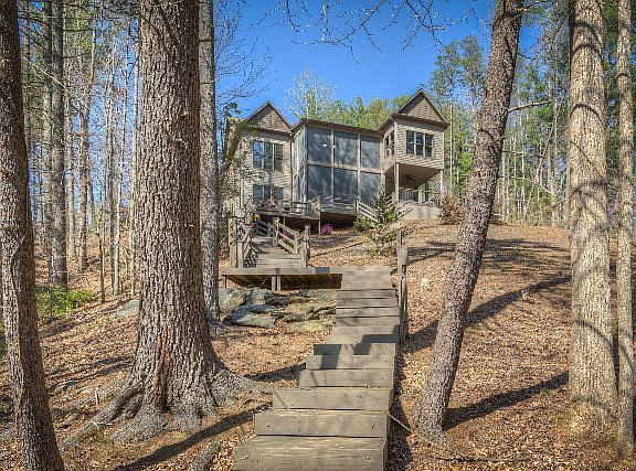 HIGHLY MOTIVATED SELLERS!!HUGE PRICE REDUCTION ON THIS EXQUISITE HOME!! Extensive renovations have been made to this Exceptional custom wood & stone Lakefront home exemplifying lake living at its best.Casual,elegant,perfect for large family & entertaining.Chefs Kitchen features Wolf 6 burner gas cooktop & double ovens,SubZero refrigerator & wine chiller,island,walk-in pantry,Bkft area,Sunrm w/vaulted ceiling,DR w/pocket doors,LR w/vaulted ceiling,stone FP w/Enviro insert,Screened Prch,huge Master Ste w/walk-in tiled shower,soaking tub,lg walk-in closet.Laundry,Powder Rm on main. 10'ceilings,8'solid wood doors,custom wrought iron work,hardwd floors throughout. Up:Office/Guest Ste w/full BA,tiled walk-in shower.Library w/built-ins,floored attic space. Lower:Family Rm w/stone FP,wet bar,Game/Media Rm,3 Large BR,2 full BA w/tiled showers,Screened Prch,Patio,Storage.Digital Russound stereo,whole house generator & water filter.Terraced walkway to deck & aluminum covered 2 slip Boat dock w/lift & Party top in private deep water cove. Some fixture exclusions