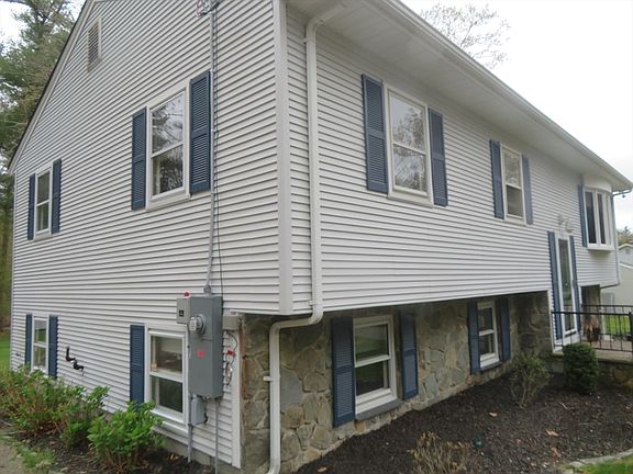 Raised ranch in country location, 12 x 20 deck off dining room, patio located under deck, 1 car under garage, partially finished basement, large shed, new septic system installed April 2024, new 200amp electrical panel installed April 2024, 3 bedrooms on main level with hardwood floors, 1 full bath on main level, living room/ dining room with wall to wall rugs, new T-Station (opening soon) located nearby in Assonet, trash pickup fee of $30 a month or go to town dump, electric service by TMLP (very reasonable rates).