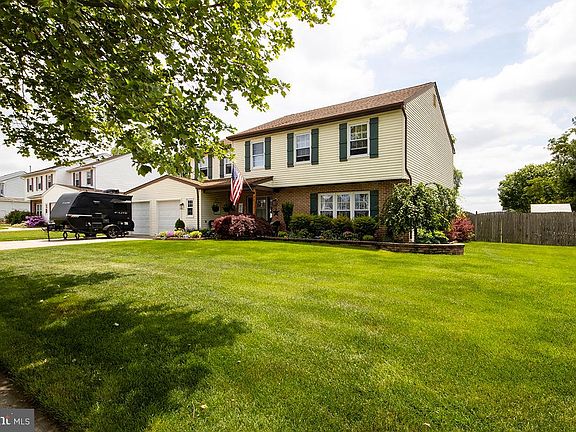 Outstanding location on this 4 bedroom, 2.5 bath 2 story home backing to Township owned open space! Giant expanded 32 foot family room with floor to ceiling full wall brick thermostatically controlled gas log fireplace. Solar electric system is OWNED not leased. Seller pays no electric bill, but instead gets a check every month for solar electric generated! Use the electric savings to pay your mortgage! Renovated kitchen with granite counters & tiled backsplash. Stainless steel appliances include a Bosh dishwasher and 5 burner gas range.. A granite center island, big pantry and upgraded flooring add to the beauty and utility of this kitchen. Luxury master bedroom suite features a master bedroom bas recessed lighting and a daylit walk in closet with door leading to the second floor expansive deck. Master bathroom has soaking tub, separate renovated stall shower, wainscoting, double sinks in newer vanity, heat lamp light and chair height toilet. Low maintenance exterior with 1/2 brick front, capped soffits and trim, vinyl thermal insulated replacement windows and newer roof. Giant fenced back yard backs to private open area. Extensive 32 X 20 covered patio is perfect for entertaining. 4 storage sheds stay. Additional money & energy saving features include pull down attic stairs to extra insulated attic, high efficiency heat and central air conditioning, tankless water heater, attic fan, premium custom fiberglass front door with 2 side lites and the OWNED solar system. Garage is fully drywalled and has a bonus storage area/workshop. More amenities include , 6 panel doors, window treatments , refrigerator in kitchen & garage stay, freshly painted, newer carpeting, and more! Second floor rear deck needs replacement decking and the deck only is offered as is by the seller.