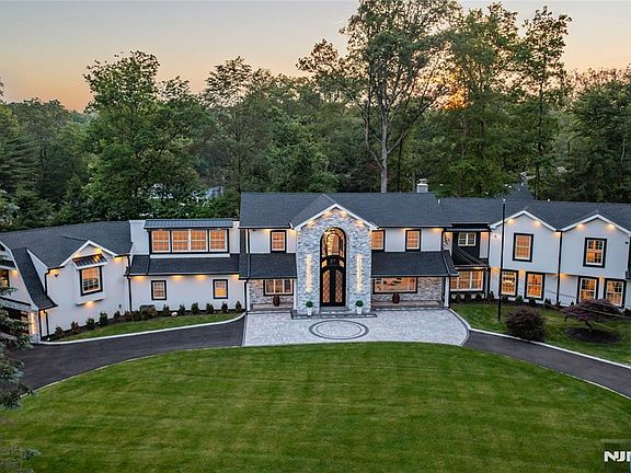 Nestled at the end of a beautiful cul-de-sac, this exquisitely redesigned residence offers the perfect blend of privacy and modern living. A circular driveway with elegant Belgium block pavers welcomes you to this exceptional home, with over 7K sq ft, including finished lower level. Every detail has been thoughtfully curated with the finest details and finishes. A grand two-story foyer with soaring ceilings leads into a breathtaking open-concept layout flooded with natural light. Oversized windows, skylights, and smart lighting enhance the airy, contemporary feel throughout the home. The state-of-the-art kitchen is a chef's dream, featuring sleek cabinetry, Viking appliances, and a built-in coffee station. Bright breakfast room with custom ceiling. First floor guest suite, sitting area/office. Large dining room, back to front living room and large bonus room with custom bar is one of a kind. Second floor with spa-inspired primary suite with luxurious bath, radiant floors, soaking tub, and dual vanities. Two ensuite bedrooms, two additional bedrooms and hall bath. Lower level offers a large sauna room, gym, rec area and full bath. Outdoors is a serene deck and patio surrounded by privacy trees. Located minutes from top-rated schools, shopping, and NYC. Don't miss the opportunity to experience luxury living at its finest in one of Bergen County's most sought-after communities and zip codes!