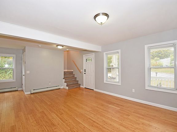 Meticulously maintained Colonial on corner lot! Bright and sunny living room boasting shining bamboo floors and opens to the kitchen - perfect for entertaining. A large, updated, eat in kitchen features beautiful white cabinets, new tile backsplash, ample and updated countertop space, new dishwasher and a breakfast bar for even more prep space! A full bath with convenient laundry area and a good-sized bedroom complete the first floor. Upstairs you will find a spacious master bedroom offering cathedral ceilings, and plenty of closet space as well as a 2nd large bedroom and full bath with tiled shower! Enjoy a cup of coffee from your front porch or in your spacious yard! Add'l features include: New laminate flooring on stairs and entire second floor, fresh paint throughout. walkout basement perfect for workshop space, and an original stained glass window! Plenty of off street parking. This home is close to Shopping, Restaurants & More! Come see all this home has to offer!