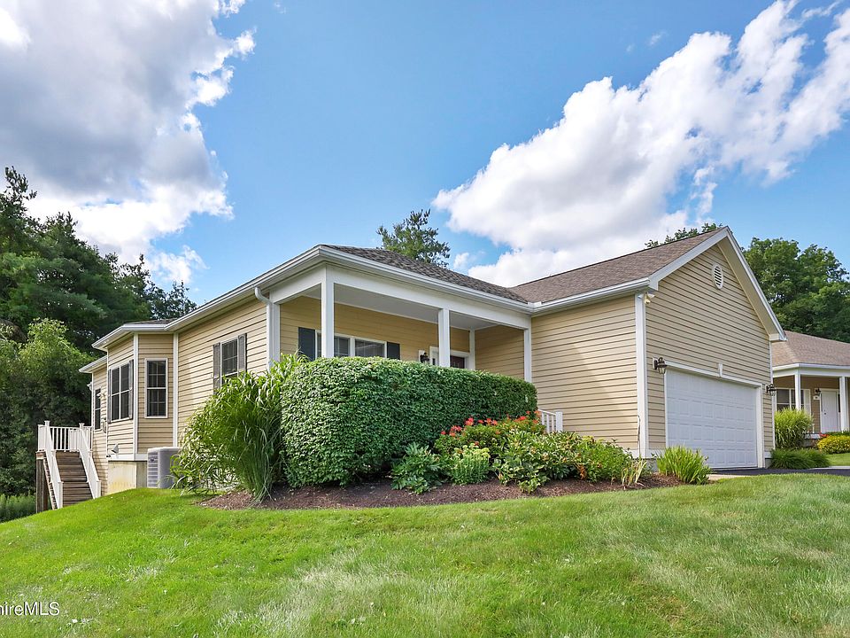 This exquisite freestanding beautifully maintained condominium has so much to offer! Features of this home include an open floor plan with plenty of natural southern light, wood floors, and tasteful finishes throughout. The main level boasts a spacious kitchen space that flows seamlessly into the dining and fireplaced living area, creating an ideal space for entertaining family and friends. The updated kitchen features stainless steel appliances, gorgeous granite countertops, and ample cabinet space for storage. The first-floor bedroom wing features two well-appointed bedrooms, plus a luxurious primary suite with a walk-in closet and a spa-like bathroom with a soaking tub and separate rain shower. Access your private three season porch from both the living area and the primary suite through French doors. If you're looking for overflow space, this is the condo for you. You will be welcomed to a finished lower level with a large family gaming area, a perfectly situated fourth bedroom, a completely refinished high-end tiled bath with attention to detail, and a workout room complete with a sauna. Nothing was missed when designing this unit. Enjoy tennis, the outdoor swimming pool, and the clubhouse with exercise equipment for your recreational pleasure! Mt Greylock, Jiminy Peak, Bousquet ski area, Pontoosuc lake and many other attractions are close by.