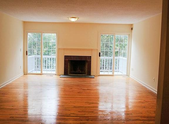 Freshly painted Ranch with hardwood floors and updated Kitchen, convenient single level living. Lovely, large Living Room with fireplace and access to private deck. Bright, quiet, end unit overlooks tranquil green space. 1 car garage and unfinished basement offer great storage space. Enjoy Woodfield Village amenities - Pool, Club House and Tennis!