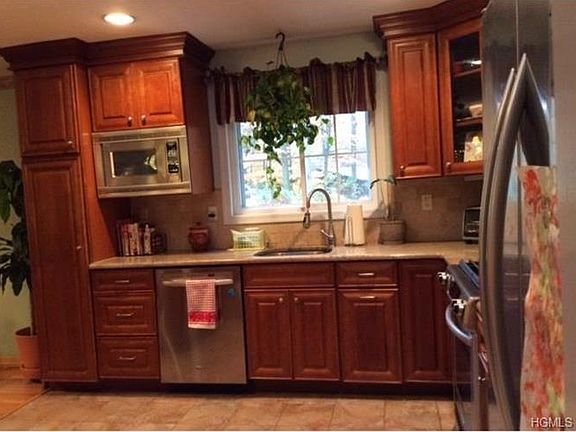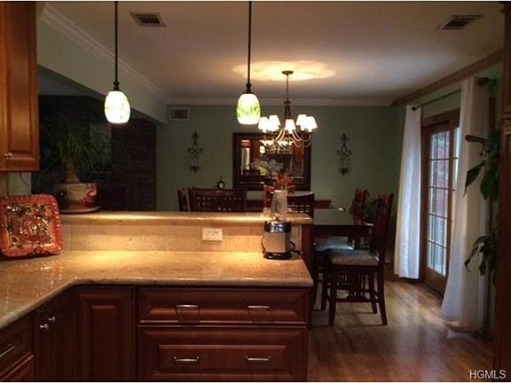Beautifully maintained Bi-Level features Brick wood burning FPL in Living room Sparkling H W floors and recessed lights. Formal Dining Room with H W floors Crown moldings and French Door sliders that lead to a two tier deck with hot tub overlooks pristine manicured property. As season permits enjoy vinyl inground pool surrounded by stone patio. Open concept kitchen with maple wood cabinets granite counters and high end stainless appliances. New energy efficient thermal windows. New electric service. Lower level offers a stove wood floors and sliders walkout to exterior patio and private backyard.