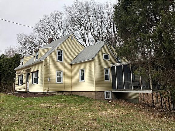 Rehabbers and flippers THIS IS THE ONE FOR YOU Set on Granby's scenic Barn Door Hills, this home is set on over 8 acres of rolling, wooded land. This cape has 3 bedrooms plus office, 2 full baths, open Living Room and Dining Room, Large eat-in kitchen with sitting area and vaulted ceiling Family room addition with wood stove to keep you warm on those cold nights. A deck and screened porch overlook the Salmon Brook and the wonderful private backyard. The basement is a walk-out - perfect for a shop, hobby or play room. This home needs TLC and vision and it will be a gorgeous estate to call home. Close to town, library and award winning schools. A short ride to Bradley International Airport and half way between Springfield and Hartford. Don't wait -