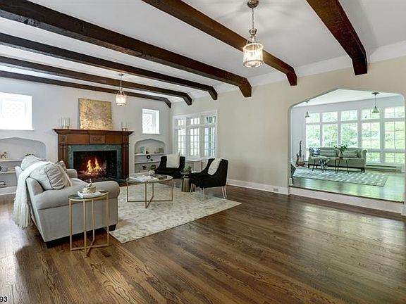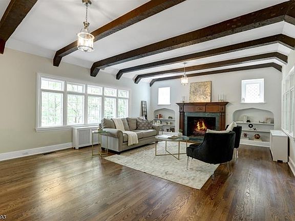 BEST VALUE IN SHORT HILLS! ideally located on .36 acre on quiet street walking distance to the Short Hills and Millburn Train Stations and Downtown Millburn! Huge kitchen with stainless steel appliances and enormous center island totally open to family room with skylights and gas fireplace and french doors opening to the deck. Sunken living room with original ceiling beams, sunroom with floor to ceiling windows for abundant natural light. 3 fireplaces, open flow. Large deck and stone floor mudroom with leaded glass windows. Unique and charming architectural features throughout! Luxurious master suite with gas fireplace and spa-like bath, 2 en suite bedrooms and guest room on 2nd floor. Terrific 3rd floor suite with bedroom, full bath and large bonus room, perfect as an art studio or exercise room. Generator! Tax appeal filed!