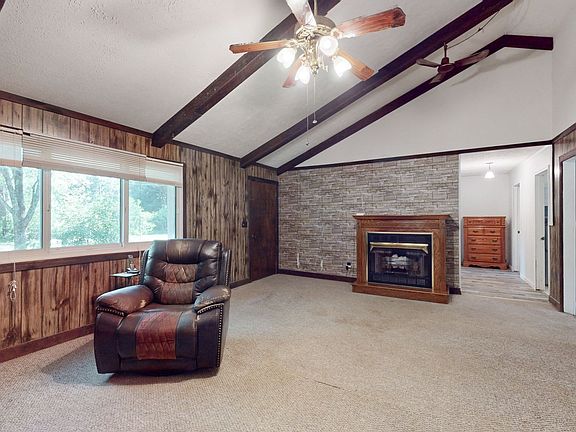 If you're looking for an affordable home with some land in the country, your search stops here! This home has an attached 2-car garage, metal roof, modern tilt-to-clean windows, and a covered front porch and back patio. The eat-in kitchen has white painted cabinets and includes a refrigerator and stove. The living room showcases a vaulted ceiling adorned with wooden beams, triple-pane windows, and includes a gas fireplace. Beautiful, large lot with a 24x20 shop/detached garage and 24x10 semi-finished storage building. How does not having a water bill sound? This home is on well water! Sold as-is with no known defects.