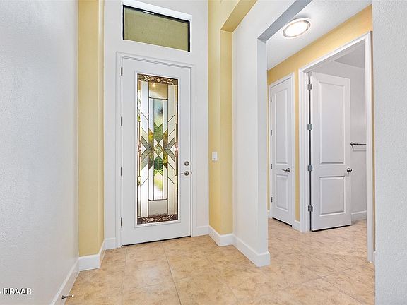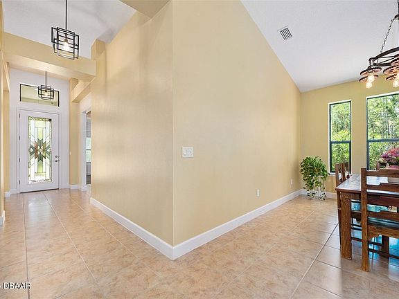 Want an oversize, custom built 3 car garage home with a heated pool where the Landlord pays for LAWN AND POOL maintenance? Look no further! Nestled at the end of a quiet cul-de-sac in the sought-after gated Plantation Bay community, this custom-built 3-bedroom, 2-bathroom home (approximately 2,101?ft ) sits on a generous 0.77-acre lot, surrounded by lush, wooded conservation space and a peaceful creek along the east property line. Open, spacious layout with a large foyer, soaring high ceilings, trey ceilings, and 8-foot doors throughout. Gourmet kitchen featuring 42? wood cabinets with crown molding, soft-close doors and drawers, under-cabinet lighting, stainless steel appliances, a built-in walk-in pantry, granite and quartz countertops, and a generously sized center island with breakfast bar and built-in shelving. Living room seamlessly opens via 3-panel pocket sliding glass doors to the screened lanai and pool area, perfect for indoor-outdoor living. Primary suite includes sliding doors to the lanai, double split vanities with quartz countertops, a separate water closet, and a walk-in tiled shower with rain head, handheld nozzle, built-in bench, and grab bar. Secondary bedrooms are positioned in a split-bedroom layout up front, offering privacy. A formal dining area and dedicated laundry room add to the home's functionality. Surround sound speakers and wall mounted TV's to stay.