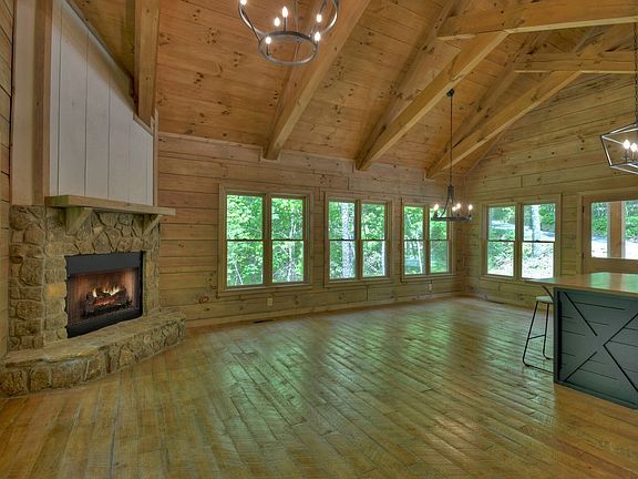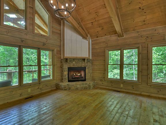 Situated on 2.57 acres and minutes from Blue Ridge, Ellijay, Rich Mountain Wildlife Preserve, waterfalls, hiking, and biking with easy access.This like new, true log cabin with 2BR, 2BH would make a great get-away, full time living, or rental. In the kitchen you will find custom cabinets, upgraded granite, tile backsplash, an island for extra work space, stainless appliances, and enough space for a large dining table! The living area boasts custom timber trusses and a stone and shiplap fireplace. You'll enjoy the extra windows for natural light with blinds for privacy when needed. Laundry, with like new washer and dryer, is centrally located to the sizable bedrooms. Primary bathroom has a large tile shower and both baths have upgraded granite. The finishes on this home really set it apart from the typical cabin. You have to see it in person to truly appreciate the inviting feel it offers.