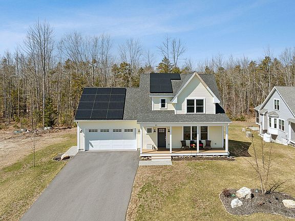 This home has it all! A well-built 2022 custom construction in the sought-after Beacon Ridge neighborhood of East Brunswick. Upgrades include the Solar system that is net-zero 7 months of the year with an annual cost for electric heat/AC and all power at about $500, high efficiency Mitsubishi heat pumps for heat and cooling, a gas fireplace for comfort and ambiance, a whole house on-demand generator for peace of mind, expanded 2nd floor to achieve large bedrooms and storage plus high ceilings give the home a sense of space and crown moldings add a custom feel. Other features of the home include the ability to live on one floor if desired with the primary suite and laundry already on the first floor, a popular open concept design, tons of natural light, a chef's kitchen with quartz counters and stainless appliances, the dining table and built-in bench convey with the sale as an added bonus, there is a mudroom and half bath off the attached 2 car garage entry for convenience plus a welcoming entryway. The large and dry walkout basement is primed for future expansion or current use with insulated walls and ceiling, egress windows and lots of potential. The outdoor space does not disappoint with a front covered porch for relaxing and the expanded back deck/patio/fire pit area for entertaining. The yard is fenced already for pets. The location is walking distance to Thomas Point Beach, a short drive to the newly developed Cooks Corner or Bath/Brunswick shops and restaurants, a ride on the train to Portland/Boston plus a 35-minute drive to Portland/Augusta/LA. Public sewer and the town maintains the road.