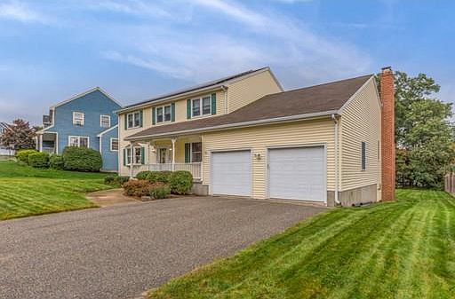 This picture perfect colonial is located in a quiet cul-de-sac neighborhood. The lovely front farmers porch will welcome you into this 5 bedroom, 3 full bath home. The large first floor layout offers formal living, dining, kitchen, office/bedroom, full bathroom, AND fireplaced family room with vaulted ceiling and skylight(s). From this beautiful room walk directly out to the oversized rear deck overlooking the 5 year young above-ground pool and nicely manicured yard. The second floor is complete with master suite featuring a walk-in closet and bath, and three additional bedrooms which share a common bath. Amenities are plentiful with items such as central air conditioning, central vacuum, security system, 2 car heated garage, and best of all energy efficient solar panels. This one owner home has been lovingly maintained since it was built in 1992. Don't miss out on the chance to be the next to call this "HOME".