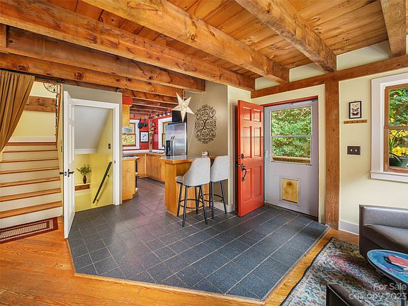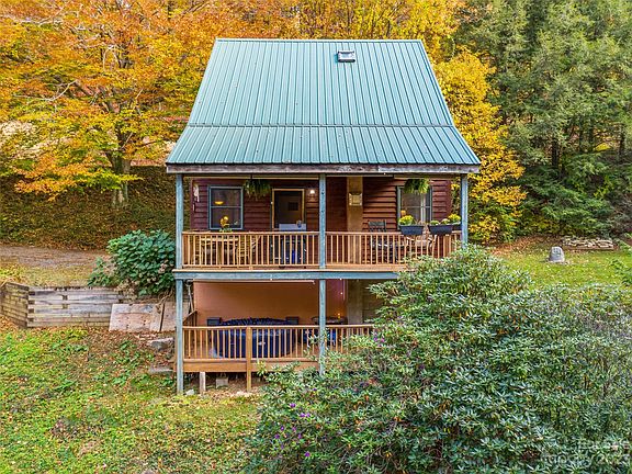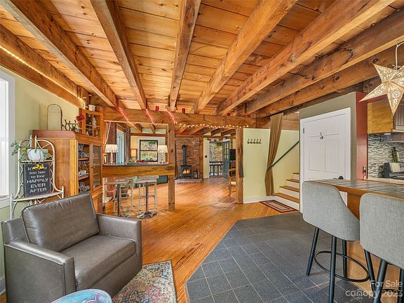Back on the market at no fault of the property, and now with 3.25 unrestricted acres and new price! Escape to the serenity of the mountains in this charming post and beam home, perfectly nestled on a quiet dead-end road within the picturesque Ox Creek community. Located just minutes away from the stunning beauty of the Blue Ridge Parkway and the pristine wilderness of the Pisgah National Forest, this property offers a unique and unrivaled mountain living experience. Step inside, and you'll immediately feel the warmth and coziness that envelops you, making this home feel like a true retreat from the world. The soothing sounds of the trickling creek from the 2 decks, create a peaceful ambiance that will melt away the stresses of life. The tranquility here is unparalleled, yet the property is conveniently located, just a short 12-minute drive from the vibrant downtown of Weaverville, and only 20 minutes from Asheville, offering an array of entertainment, dining, and cultural experiences.