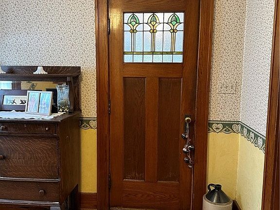 Well maintained by long time owner. Loads of old world charm........ includes hardwood floors, natural oak trim, leaded glass, built in wall units with shelves and drawers, antique door knobs, ceiling fixtures. huge country kitchen with newer slider to two tier deck, cathedral ceiling in breakfast area, appliances included, new replacement window over sink, wood stove (as is) in dining room, ceiling fan, french door in living room, foyer entry has coat closet, full unfinished attic with insulation, New water and sewer lines to the street (October 2023), detached one car garage, New forced air gas furnace and central air installed 2018, new disposal 2022, Hot water tank 2017. Deep treed lot (.51 acre)