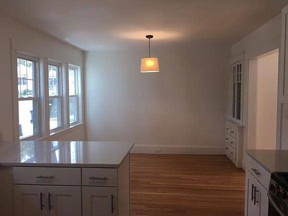 This newly renovated two bedroom apartment is located on the first floor of a two unit home offering hardwood floors throughout and sophisticated finishes. The chic kitchen features quartz counter tops with sleek stainless steel appliances; including a gas range, refrigerator and microwave. There is a dining area off of the kitchen that opens up to the living room featuring a decorative, brick fireplace. The property offers two good size bedrooms with ample closet space. The newly remodeled powder room has a built in shower and modern updates. Central air throughout and a private enclosed back porch. There is a designated washer/dryer in the basement with one garage and one outdoor parking space. Conveniently located within proximity to Newton Corner and Newton Centre. No pets and no smoking permitted.