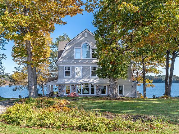 On the eastern shore of Mere Point, the sun rising over Middle Bay casts a magical light on this rare coastal property. Complete with a three story main house, a charming guest house, and a detached barn with 3 garage bays and an additional apartment on the second floor, this property offers opportunities for multi-generational living, abundant guest space, or income potential. With an existing dock and fully permitted new enlarged dock system planned, and close proximity to Paul's Marina, access to Casco Bay's exciting waters doesn't get much better than this. Inside the main home, perched on a rocky ledge directly above the bay, an open concept first floor takes advantage of the views, while a private retreat off this space offers cozy space for games and relaxation. A second floor living room features a gas fireplace, built-in cabinetry, elevated water views, expansive deck, in addition to two bedrooms and a bath. The third floor primary suite, with a newly updated bathroom, sits just below a canopy of oaks, an enchanting place to begin and end each day. The guest house has a high-end kitchen and offers good separation from the main house. The three bay barn provides ample storage, and the space above, with a full kitchen and bedroom, is the epitome of flexible space for myriad uses. On one of Southern Maine's largest coastal peninsulas, a short drive to downtown Brunswick and convenient to Portland, this is the uncompromising Maine lifestyle you have been looking for.