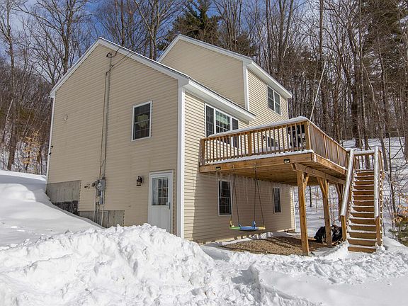 This contemporary gem offers ample space, sunlight, and natural beauty to make one feel right at home. Soak in the rays on the wide south-facing deck or relax by the fire pit in Adirondack chairs! Inside, you will be in awe of the towering vaulted ceilings and the striking angles throughout this charming home. Enjoy enhanced privacy with each of the three bedrooms on their own level. The top floor oversized primary bedroom boasts two closets and a cavernous ceiling. A well-equipped kitchen with attached dining area is the perfect spot to create and savor delicious meals for years to come, located directly off the deck. The refrigerator even has a huge touch-screen interface for your convenience! Unwind on a couch in the cathedral ceiling living room with a mesmerizing skylight above. A comfortably carpeted lower level featuring walk-out access provides extra room to spread out. Take note of the useful shed, perfect for tools and storage. The house has been well maintained over the years with no deferred maintenance, so you can move in at your earliest convenience without any looming projects on the horizon and begin looking forward to the spring season ahead. Get ready to explore nearby Pea Porridge Pond, satisfy all of your shopping needs in North Conway just 15 minutes away, and embark on outdoor adventures in the White Mountains and beyond. Year-round activities abound in this picturesque part of New Hampshire. Imagine living where you want to play.