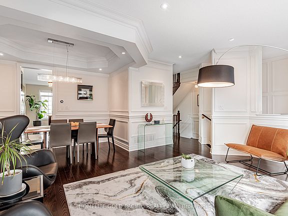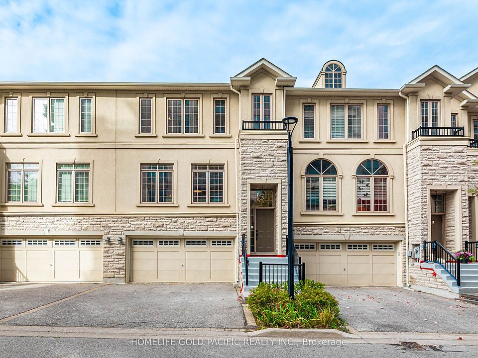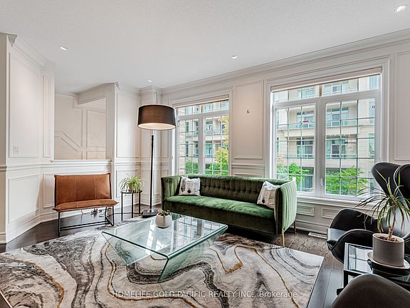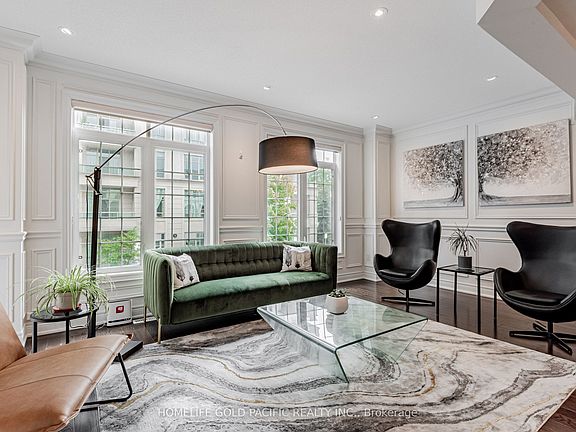 Experience luxury living in this 2,650 sq.ft. Aria townhouse, ideally located in prime North York near Leslie & Sheppard. Featuring a double garage that provides ample parking and storage, this spacious and bright home is nestled near a ravine and walking trail, offering breathtaking views and a peaceful natural setting. Elegantly designed with custom wall panels, wainscoting, and 9-ft ceilings, the home showcases exceptional craftsmanship throughout. The open-concept kitchen features a large breakfast bar, quartz countertops, and upgraded 24-inch porcelain tiles. Enjoy the spacious family room with a gas fireplace and walkout to a private deck, perfect for entertaining. Additional highlights include hardwood floors throughout, four upgraded marble bathrooms, and a large primary bedroom with a Juliette balcony, walk-in closet with built-in organizers, and a spa-like 5 piece ensuite. The basement-level recreation room has a direct walk out to the backyard, ideal for relaxation or gatherings. Residents enjoy exclusive access to Aria Condo amenities, including f fitness centre, indoor pool, party room, sauna, virtual golf range, and library. Conveniently located close to the TTC subway, GO Train, Bayview Village, Fairview Mall, North York General Hospital, and Highways 401/404/DVP, this home offers the perfect blend of modern luxury, comfort, and urban convenience.
