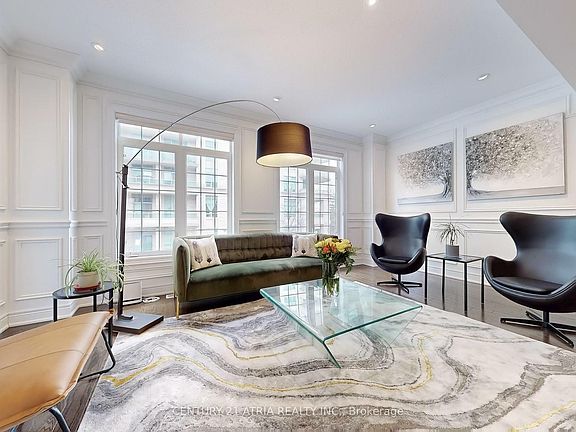 2,650 Sqft Aria luxury townhouse with 4 bedrooms in Prime North York location near Leslie & Sheppard. Double car garage & double car driveway (Size & width feels almost like a detached house). Shows like a model home! Situated right next to ravine & walking trail with breath taking views. Lots upgrades throughout!!! This property boasts upgraded customized wall panels & wainscotting adding a touch of elegance. Property feature 9-foot ceilings. The open concept kitchen features a large breakfast bar with upgraded quartz countertops & upgraded 24 inch porcelain floor tiles. Large family room with corner 2-sided gas fireplaces that leads to a private deck perfect for entertaining. Hardwood floors throughout. 4 Washrooms with marble upgrades. Large master bedroom with Juliette balcony & large walk-in closet & built in organizers. Additional family room / recreation room on ground level that walks out to backyard. Convenient Laundry room situated on the upper level. Parking for 4 cars. Exclusive access to Aria Condo amenities, providing a luxurious lifestyle with a fitness centre, indoor swimming pool, party room, sauna, virtual golf range, and a library. This prime location is conveniently close to the TTC subway station, Go Train station, Bayview Village , Fairview Mall , North York General hospital, and highways 401/404/DVP.