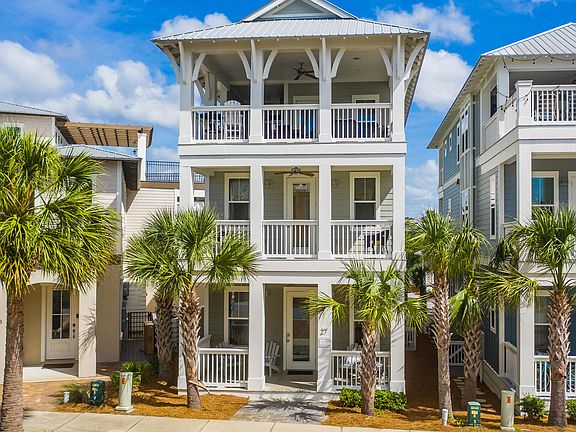 Location and views combine at this three-story beach home, nestled in the heart of 30A's east end. This four-bed, 3.5-bath home is designed for alfresco living with gulf views from the huge entertainment deck on the top floor. Designed for social gatherings, it has a spacious seating area and a covered summer kitchen with built-in refrigerator and appliances. It's the natural place to relax at sunset, laughing and chatting while steaks and burgers sizzle on the barbecue. This custom-built home is ideal as a second home or vacation rental. It has ample parking and shallow steps leading up to the traditional front porch. Inside, the high-end finish wows with gorgeous hardwood flooring, designer lighting and an open-concept floorplan with cozy fireplace. Natural daylight bounces off the white walls and shiplap, creating a light, laid-back ambiance. Head into the well-planned kitchen area to find granite counters, a gas range, full complement of stainless appliances and a built-in breakfast bar for five. Two master suites on the second floor are equally luxurious and well-appointed. The main master bath has its own oval tub and a huge walk-in shower with both rainhead and hand-held shower systems. Kids will love the third-floor bunk room, which provides a designated area for them to kick back and play. Porches on every level provide a variety of areas to escape for a quiet read. This beautifully appointed beach house is a short stroll to several community pools, a huge lagoon pool and Seacrest town center. Wonderful restaurants, shopping and entertainment are also readily available in both Alys and Rosemary Beaches. This spacious home comes with deeded access to the stunning white sandy beach less than half a mile away. It's a true beach retreat in a prime location close to the best of everything.