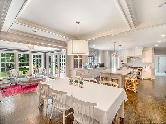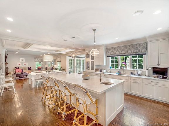 Available now through Labor Day! Gorgeous home in waterfront CT town just 40 miles from NYC. Ideally situated on tranquil 1.5 acres overlooking private golf course. Bright, sunny open floor plan living space and tremendous outdoor living space. Phenomenal chefs kitchen with 12' gathering island, 6 burner 48" Wolf range, refrigerator drawers and more. Spacious family room with fireplace and french doors to screened porch & stone patio overlooking expansive, level property and Wee Burn golf course. Formal dining room and butler's pantry with wine refrigerator & dishwasher. Study with custom built-ins perfect for working from home. Beautiful master bedroom with large walk-in closet and lux master bath. 5 additional bedrooms all with en-suite baths. Finished 3rd floor with large playroom, art room, bedroom and full bath ideal for a nanny or au pair. Finished lower level with gym, full bathroom, ping pong table, large TV room and play room . Expansive yard with trampoline and play-set. Indoor Trackman golf simulator is the icing on the cake! Minutes to vibrant Darien town center, train, beaches, golf, tennis & parks. Waterfront community 40 miles from NYC offering coastal charm, historic preservation, exceptional restaurants and shops. Perfect summer getaway! Available July & August.
