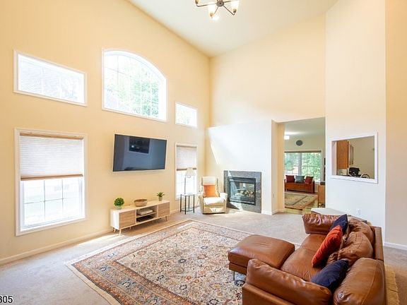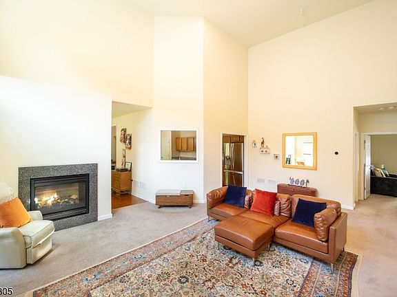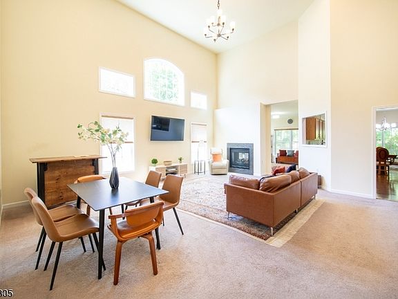 This beautifully designed 2018 square foot 3-bedroom, 2-bath ranch offers spacious single-level living with soaring ceilings, open floorplan and resort-style amenities just steps from your door. Expansive living area with high ceilings and abundant natural light greet you upon entering. The spacious family room is adorned with a double sided fireplace which is shared by the formal dining room which is perfect for hosting holidays and dinner parties. The large eat in kitchen is finished with granite countertops, lots of cabinets, double door pantry, and space for casual dining. The primary suite includes a sitting area and an ensuite bath with soaking tub, separate shower and walk-in closet. Two additional bedrooms are ideal for guests, home office, or hobbies. The laundry room includes appliances, sink and shelving for supplies. Garage access thru a mud room with plenty of room for vehicles and gear. Located at the Bluffs at Ballyowen, with a low maintenance fee that provides lawn cutting and landscaping, snow removal from driveway and walkway and a clubhouse with a meeting room for gatherings and events, fully equipped exercise room with weights and cardio machines and a heated outdoor pool for summer relaxation. Located just minutes from Ballyowen Golf Club and surrounded by scenic views, this home offers the perfect blend of privacy, convenience, and luxury. Whether you're looking to downsize or simplify, this ranch delivers comfort without compromise.