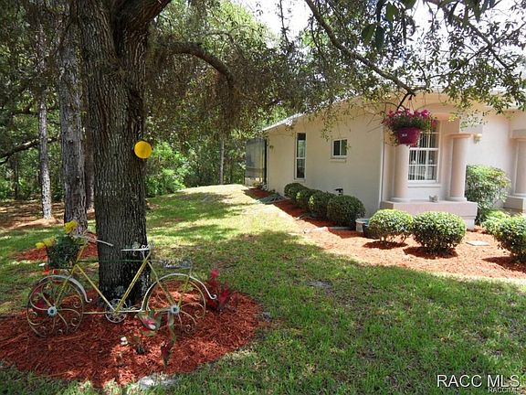 Artistic Homes 3 bedroom, 2 bath, pool home located on a Cul-de-Sac in Sugarmill Woods/Oak Village South. Heated self cleaning pool with waterfall overlooking a heavily wooded greenbelt. Owner will sell the buildable lots on either side to create an almost one acre park-like setting. Great Room home with split floor plan, 10 ft. ceilings throughout, triple sliders in great room and slider in master suite open to a large lanai. Spacious kitchen and breakfast room overlook the lanai. Master bedroom suite includes two walk-in closets, snail shower, garden tub, vanity with double sinks. The oversized, three car garage has built in storage shelves.