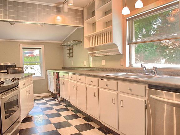 If you are looking for a place that feels like you are in the country, your search is over. Tucked away on a small country road, you'll find this quiet oasis. Large spaces, nice bedrooms, closets galore and all the appliances! The home has desirable gas heat and updated windows. The garage will hold four vehicles, with 10' ceilings, all your toys will fit! The home will need some work to qualify for certain loan programs, FHA buyers call for details and flood elevation information.
