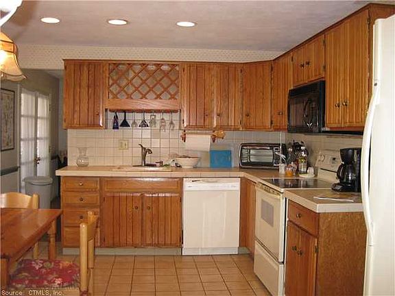 Charming Saltbox Colonial sits on a wooded knoll. Central Air, new roof, baths and hardwood floors throughout.Great finished basement with walkout. Huge garage with loft storage. Three season porch with cathedral ceiling. Light and airy, move in home.