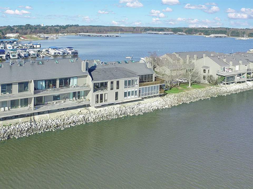 Waterfront Property! This impressive home with contemporary design is outstanding in all areas. Open plan with an abundance of space, fireplace, wood flooring and walls and walls of windows to catch the spectacular views of the BIG water. This home boasts 3 bedrooms 4.5 baths and an elevator. You will be impressed with the majestic views from the master suite. Wait until you see the outside living space which includes balcony, deck, screen porch and roof top patio. This is the dream home. You will also enjoy the clubhouse and pool with views of the reservoir. You HAVE to see it to believe it! HOA is responsible for exterior repairs and painting. The exterior of the entire complex is being painting now.