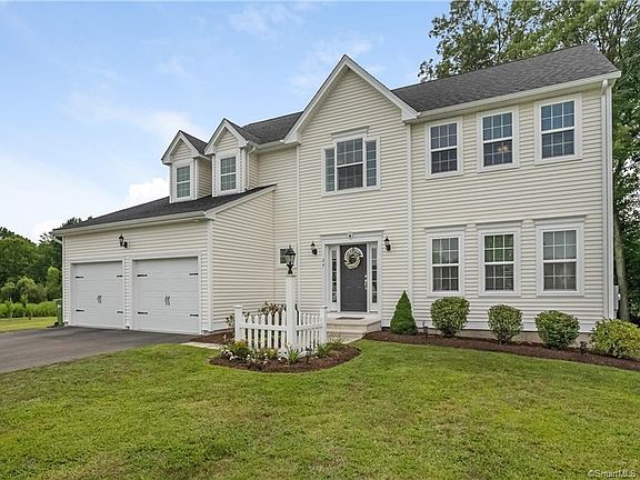 GORGEOUS Colonial at the end of the cul de sac in Windsor Estates. This like-new charmer is the Senator Pembrooke floor plan by award winning T & M Building Co. The first floor features an open plan with hardwood throughout. Large eat-in kitchen with granite counters, island and stainless appliances. The breakfast room is open to the family room with natural gas fireplace and access to back deck. Formal dining room, full of natural light is open to front facing living room. Powder room, coat closet and beautiful entryway also on this level. Upstairs master bedroom with full en suite - generous walk-in closet, two vanities, stand up shower and soaking tub. Three additional bedrooms, full bath, and full laundry room on second floor. Full basement with walk-out, natural gas heat and hot water, C/A, 2 car garage, and beautiful surroundings.