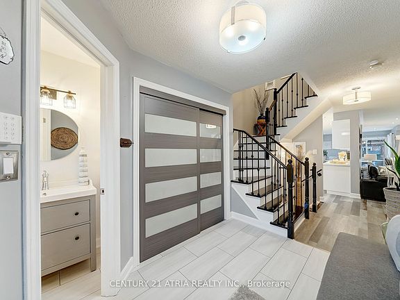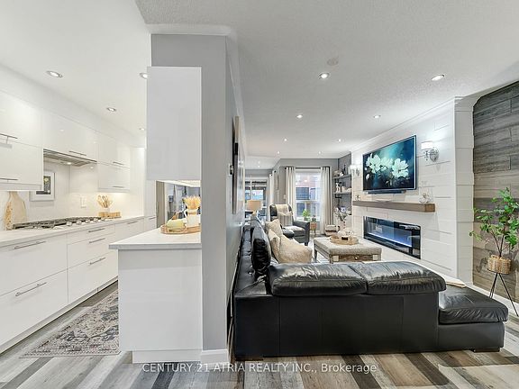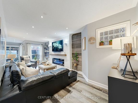 Immaculately kept freehold Townhome sitting across the street from Catholic and Public k-8 schools, Etobicoke Creek trail and a stones throw to many amenities. Inside is a fully renovated main floor with a gourmet kitchen with bluetooth enabled appliances, touch faucet and a built in dishwasher. In the living room, you'll find a custom floor to ceiling fireplace with accent shelving. The nearby dining area opens up to the backyard oasis with 2 gazebos, raised flower beds, newer deck, grassy area with access to garage. Inside, the professionally refinished oak staircase invites you upstairs to a primary bedroom retreat with a custom wood accent wall, 2 large walk in closets and a spa like ensuite with soaker tub. Two more bedrooms with a walk in closet and a 4 piece bathroom complete the second floor. Basement is partially finished.