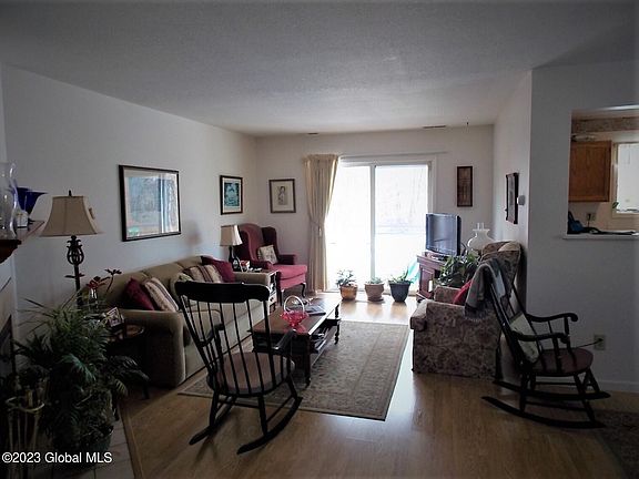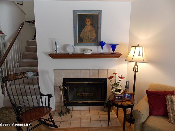 End unit townhouse in sought after Colonie neighborhood, good sized back yard with concrete patio backing to wooded area, adjacent to small association parking lot. Features include recently replaced Lennox furnace, central air, fireplace, skylight and loads of closet space. Association fees cover common area maintenance