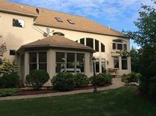 A circular front drive makes a grand entrance to this one-of-a-kind estate that also features a magnificent waterfall and courtyard. Sited on a level, nearly one acre landscaped lot, this custom home features 6,138 sq. ft.: 11 rooms, 6 bedrooms (1 on 1st floor), 4.5 baths, and a three-car garage. Inside, you'll be captivated by the home's wide open, soaring 20 ft. high ceilings and bridal staircases set apart by a marble foyer. A home designed for entertaining from its formal living and dining rooms to its large maple amenity packed kitchen, including a large granite island, stainless steel Dakor gas stove, Asko dishwasher and Sub Zero Refrigerator. The kitchen opens into an amazing four-season, tiled sunroom with views while the expansive 23' X 23' Great Room looks out on the courtyard and waterfall. The private master suite is enhanced with generous sized windows, a walk in closet, tiled master shower, jetted tub and double granite vanity. Plenty of room (3,500 sq. ft.) to expand.