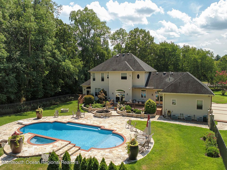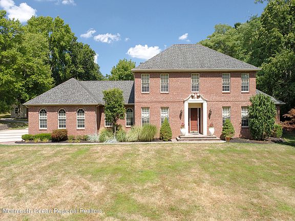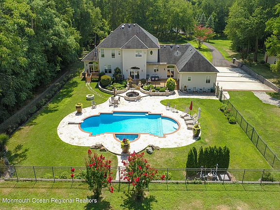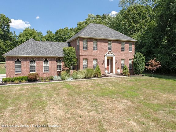 SELLER IS RELOCATING AND READY TO GO! Come see this unique home situated on over 3 acres in Tinton Falls! IF you are searching for a custom home where Privacy, Quality & Design are a must? Then LOOK NO FURTHER as this is the one you waited for! Yes, the seller is relocating and is sad to leave this resort style private property and all the luxurious custom features. Buyers don't have to wait on a seller finding the next home. You can be in before the school year! This home features 5BR/4.5 Bath brick front home w/ 4 car garage was built by the owner & is situated on 3.02 private acres at the end of a cul-de-sac. Set back approx. 320ft. from the street, lends to the majestic aspect of this extremely unique property where peace & tranquility reign. No expenses spared in the quality of products used in building this home! 1st fl. has 10' ceilings w/ 9' on the 2nd fl. Gourmet kitchen includes Sub-Zero refrigerator, 2 Wolf wall ovens, 2 Bosch dishwashers, granite countertops, custom cabinets, center island, multiple sinks & so much more. TRUE Brazilian cherry hardwood floors throughout, decorative crown molding, tray ceilings & a designer's showcases this elegant home. If entertaining is something you enjoy, this yard will not disappoint! Country Club style backyard is pure paradise & features a 50x25 Gunite saltwater pool & spa w/ Travertine decking, custom lighting, professional landscaping & plenty of room to add a sports court is so desired. Attached cabana w/ 1BR/1Bath and kitchenette can also serve as a mother/daughter or perfect guest suite! Close to all major transportation, restaurants, shopping, beaches. Come live by the Jersey Shore IN STYLE!