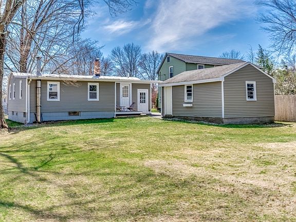 Architecturally-speaking, this mid-century modern gem might be the coolest home on the market in Easthampton. Nestled between the Manhan Bike Trail, the high school and K-8 school, and Nonotuck Park, this 3-bed 1-bath ranch is a memorable jewel--ceiling and woodwork and trim details not seen anywhere else. Granite kitchen, eating 'nook' and a dining area possible in 3 different spaces. Inviting front sunroom being used as cozy living room, and ample primary bedroom w/ a good closet is tucked into the rear of the home. Updated, sweet bathroom, updated lighting fixtures, new interior paint. Loads of dry storage for bikes, kayaks, workshop or vehicle in the garage. Basement could easily be at-home office or extra den. Quiet, suprisingly deep backyard w/ shed, and deck for morning coffee. Rebuilt chimney. Excellent wood floors, kitchen pantry space, superb natural light. Truly well-maintained, original and quirky...very easy living. New infrared sauna negotiable. Nice price!
