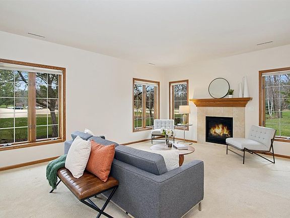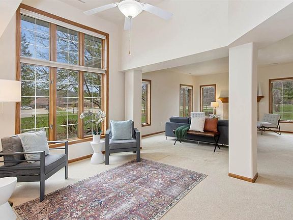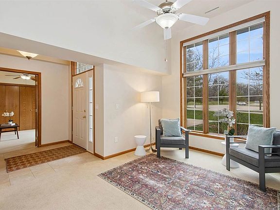 This comfortable and welcoming main-floor condominium is just minutes from Downtown Iowa City, the University of Iowa Hospitals, Hancher Auditorium, and nearby parks and walking trails. It offers a zero-step entry at the front door and a modest step from the attached two-car garage for easy accessibility. The spacious living area is filled with natural light and features a gas fireplace. The kitchen connects to a generous breakfast/dining area, which leads to a three-season room with access to a small patio. The condo includes three bedrooms: two well-sized rooms, one currently staged as an office, and a large primary suite with an ensuite bath. A full guest bath is also available. The laundry area is conveniently located off the garage in the mudroom for added functionality.