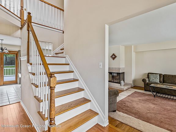 IMPECCABLE 4 bedroom 2.5 bathroom colonial in very desirable neighborhood has a GORGEOUS property with spacious maintenance free deck overlooking the lush private fenced yard. Enter the home and you'll notice beautiful hardwood floors and 2 story foyer. Cozy up near the 3 sided wood burning fireplace in the living room and family room or enjoy cooking in the eat-in kitchen. Upstairs has all 4 bedrooms each overlooking the yard. The master bedroom is spacious and has a newer en-suite bathroom. Newer items also include washing machine, HVAC, and fence. NEW 18kw generator included too!