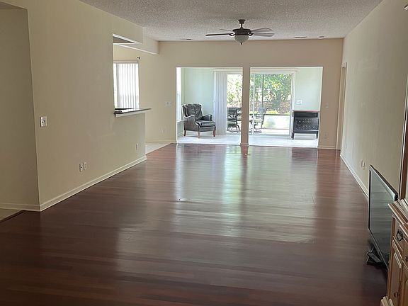 Lovely Home for Rent! Heron model home available for a minimum one-year lease starting July 1. The monthly rental price includes lawn service, pest control, and HOA fees. At least one tenant must be at least 55 years old and all tenants are required to obtain a CAM card from Sun City for the duration of their stay, which costs $537.50 each and provides access to all amenities. This home features a garden room that leads to a screened lanai and an outdoor paver patio, perfect for outdoor living and grilling, creating a bright and cheerful atmosphere. There is a separate, spacious office/den with French doors and attractive new flooring. The entrance boasts wainscoting, tile floors, and a coat closet. The large dining room flows seamlessly into the open living room. The kitchen is equipped with granite countertops, a kitchen island with a granite top, a large pantry, a breakfast bar, and an eat-in breakfast area that overlooks the garden. The laundry room includes a washer and dryer. The expansive master bedroom features an en suite bathroom with dual sinks and a large walk-in closet. The property also includes a new brick driveway, well-maintained landscaping, and a lovely garden in the back. No smoking is permitted in the home. Cats are not allowed. Most dogs are welcome, subject to a refundable pet fee of $250. Rent is due the first of the month. There is a 5 day grace period. There is a $50 fee for past-due monthly rent payment.